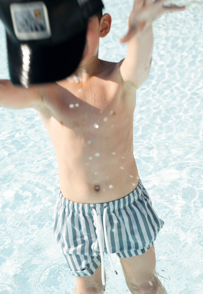 El traje de baño para niño Wappy es el favorito del verano: cómodo, moderno y ultra taquilla. Su diseño con rayas playeras y calce perfecto permite usarlo también como short durante todo el día.