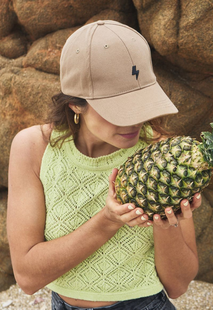 Fabricado en 100% algodón, es suave, respirable y ajustable en la parte trasera para adaptarse cómodamente a tu medida (de 55 a 60 cm). Ideal para usar en la playa, la ciudad o tus días al aire libre.