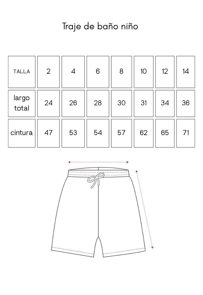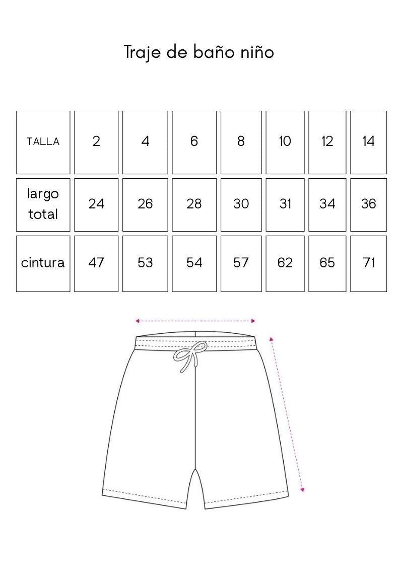 Disponible desde la talla 2 hasta la 14, cuenta con malla interior, cordón ajustable, bolsillos laterales y trasero, garantizando comodidad y funcionalidad para todas sus aventuras.