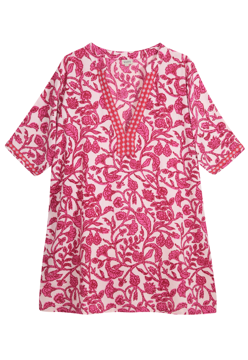 Su caída liviana y fresca lo convierte en una prenda versátil que puedes usar tanto como salida de baño o vestido casual para el día a día. Disponible en 3 prints exclusivos que reflejan el espíritu veraniego de Wappy 🌴✨